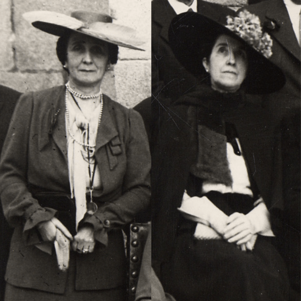 María e Concha de Mendoza Babiano na inauguración das Salas Navais do Museo de Pontevedra, en 1943 (detalle).